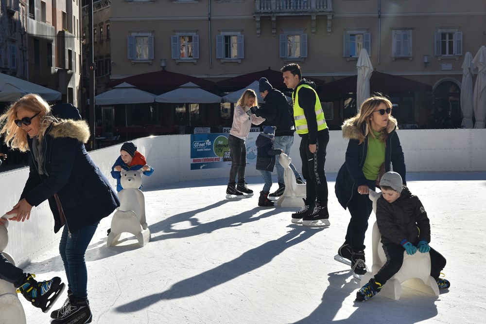 Jučer smo na klizalištu susreli dvije skupine djece. Prva je stigla iz Osnovne škole Tone Peruška: umijeće na ledu iskušavali su učenici VI a s razrednicom Nataliom Carraro, te petogodišnjaci skupine Leptirići Dječjeg vrtića Centar. Uživali su u prekrasnom danu i prilici za klizanjem.