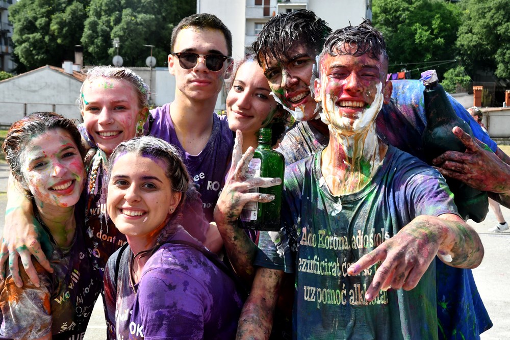 Pravo veselje kakvo i priliči posljednjem danu srednjoškolskog obrazovanja održalo se danas na parkiralištu Društvenog centra Rojc, a u kasnijim satima će se nastaviti na drugim lokacijama poput Gortanove uvale, Titovog parka i kluba Pietas Julia.
