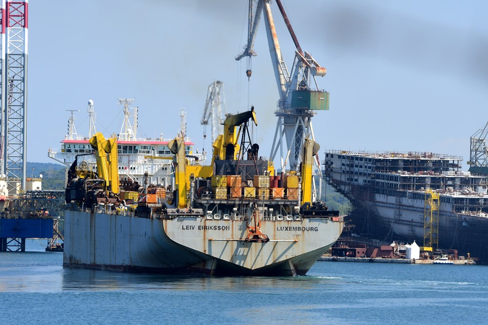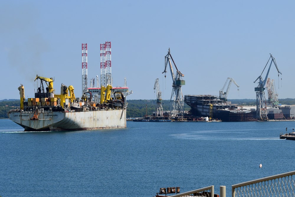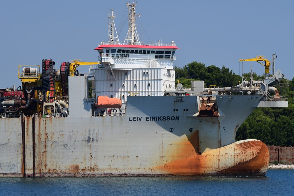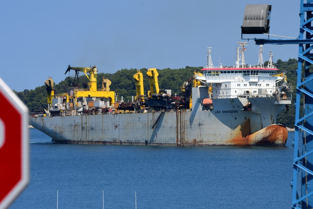 Baš kao što je bilo i najavljeno, danas je u pulsku luku uplovilo najveće usisno jaružalo na svijetu Leiv Eiriksson da bi privezan uz Uljanikov otok čekao prolazak krize i ponovno pokretanje poslova za ove brodove posebne namjene. Već za par dana, točnije 4. kolovoza, trebao bi stići još jedan brod specijalnih namjena, jaružalo Ibn Battuta.