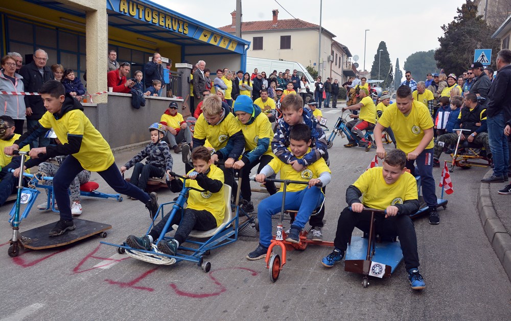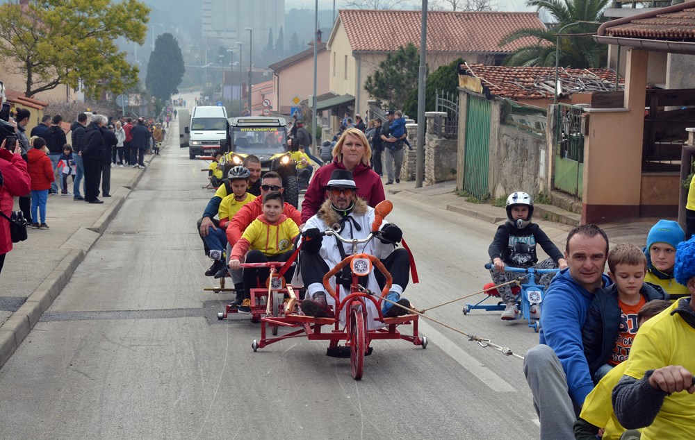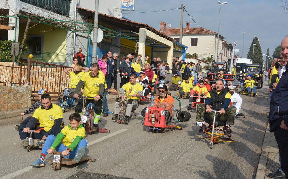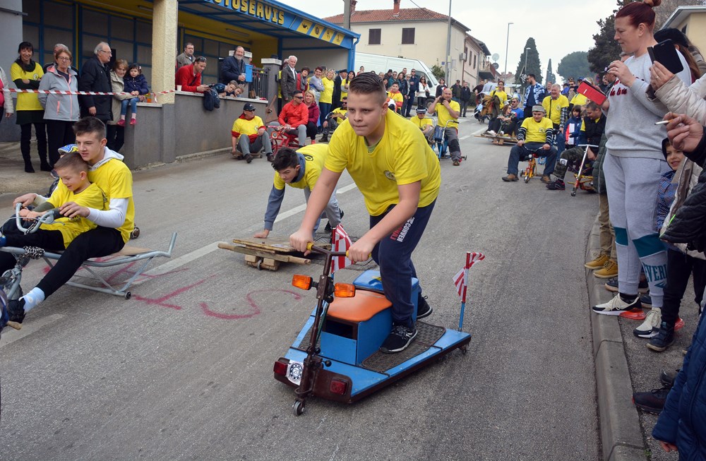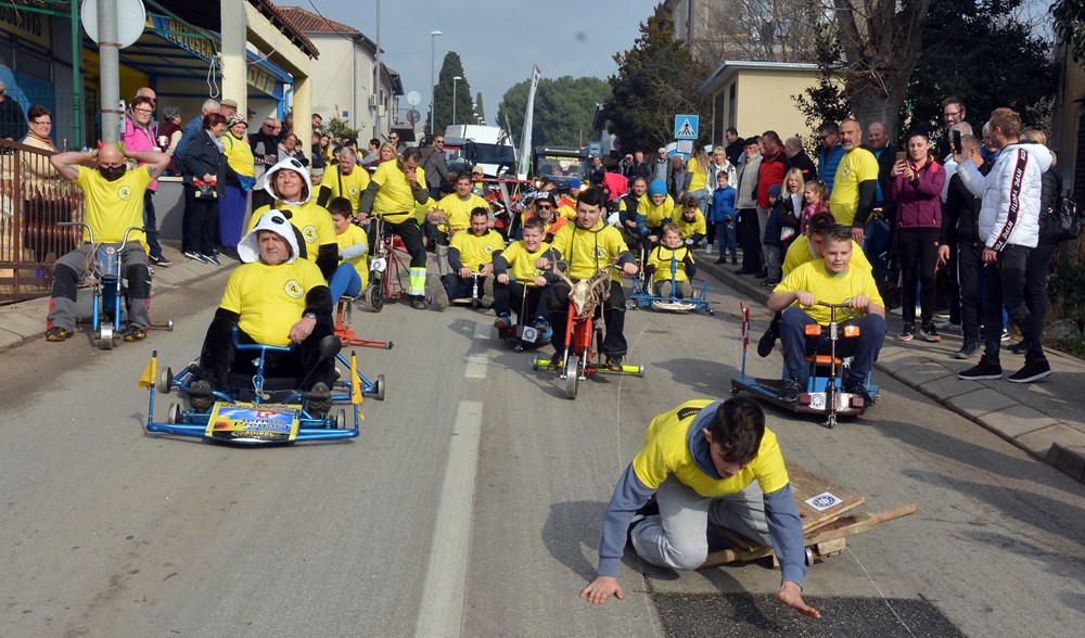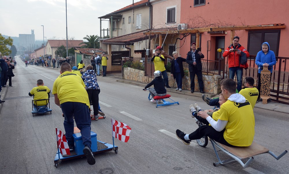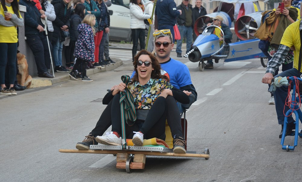 Četrdesetak karića i više od 60 sudionika šiškalo je i roštalo danas po Partizanskom putu u sklopu 4. Velovrške balinjerade. Spuštali su se od raskrižja sa Creskom ulicom do Mandrača, uz glasno bodrenje brojne publike uz cestu. Starinski, napravljeni samo od drvenih dasaka i pokojega čavla, moderniji od okvira bicikla i motora, ukrašeni zastavicama ili rogovljem, posve začuđujući poput aviona s padobranom - svi su se natjecali čije je karić brži, ali i ljepši te originalniji.