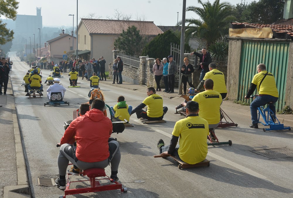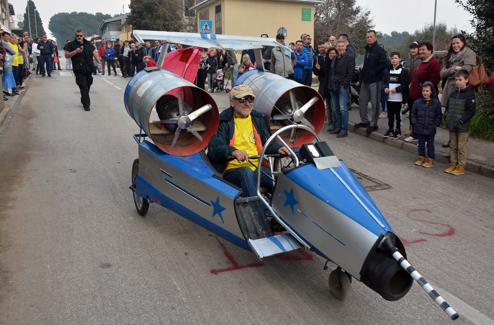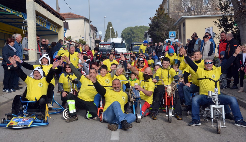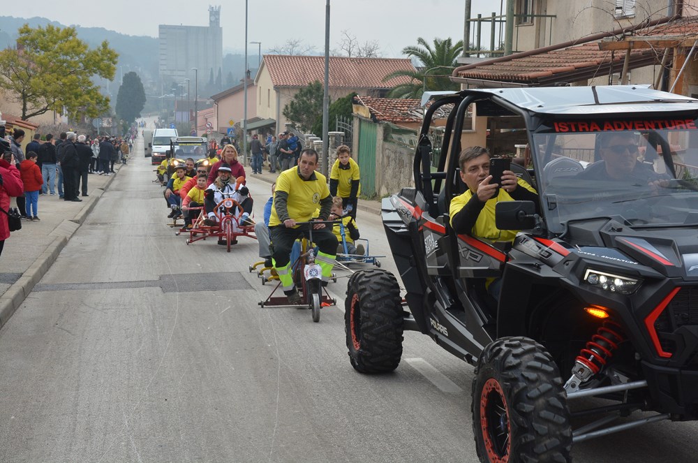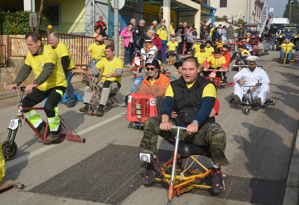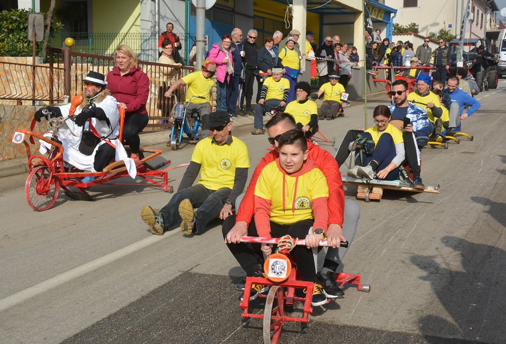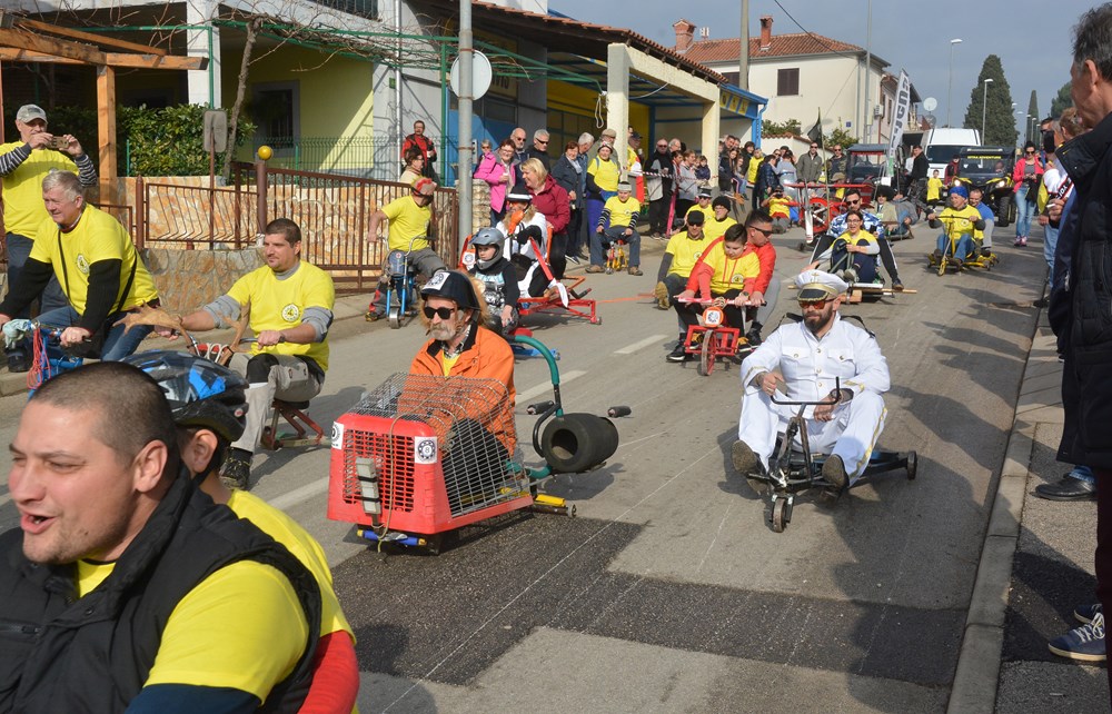 Četrdesetak karića i više od 60 sudionika šiškalo je i roštalo danas po Partizanskom putu u sklopu 4. Velovrške balinjerade. Spuštali su se od raskrižja sa Creskom ulicom do Mandrača, uz glasno bodrenje brojne publike uz cestu. Starinski, napravljeni samo od drvenih dasaka i pokojega čavla, moderniji od okvira bicikla i motora, ukrašeni zastavicama ili rogovljem, posve začuđujući poput aviona s padobranom - svi su se natjecali čije je karić brži, ali i ljepši te originalniji.