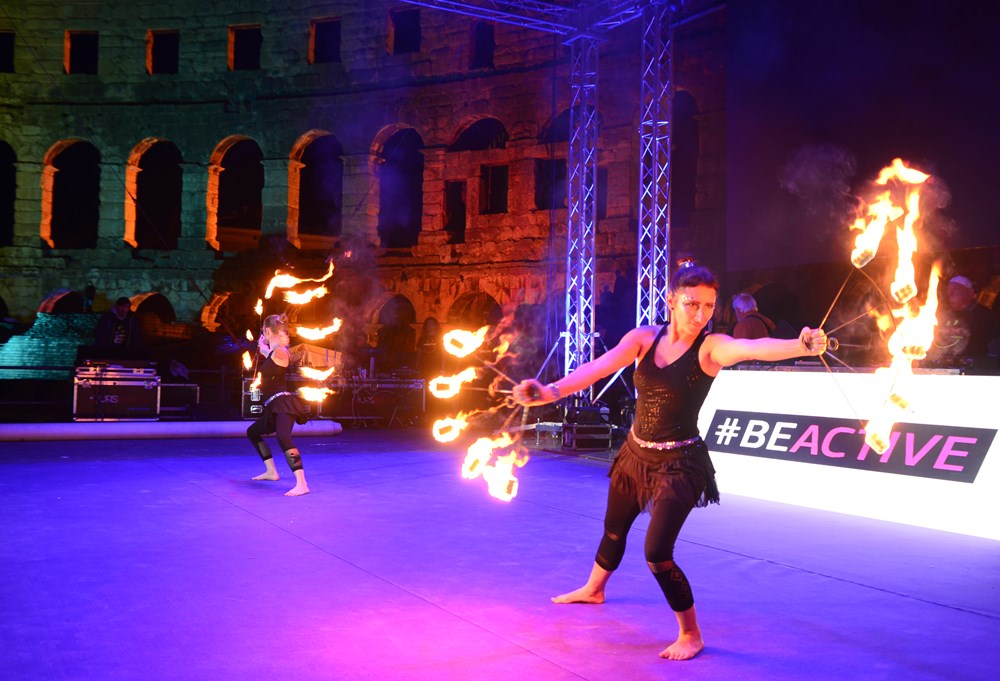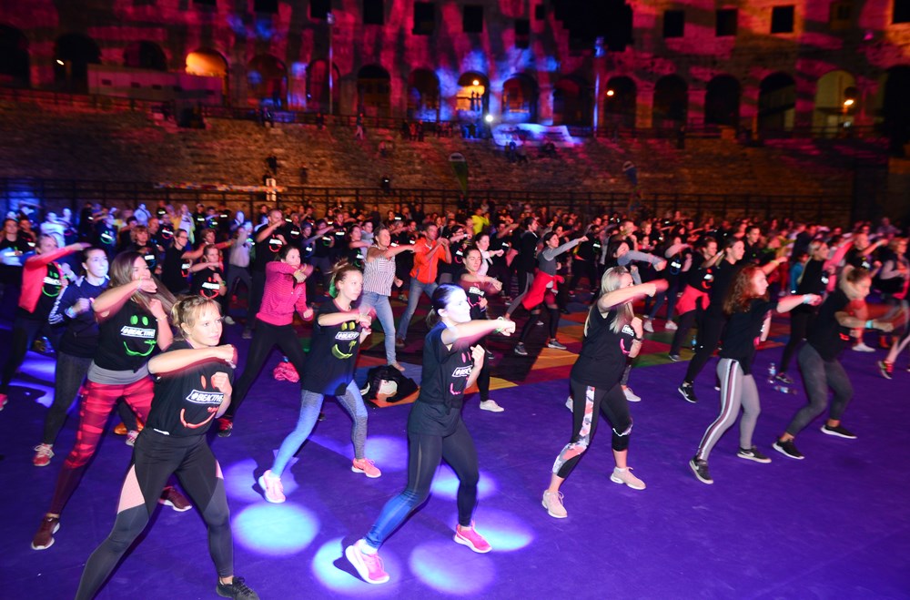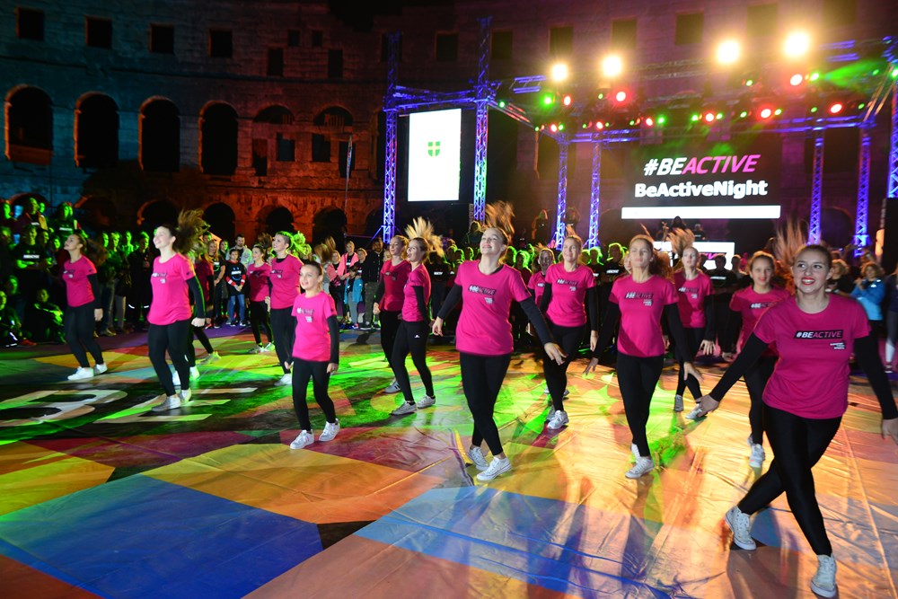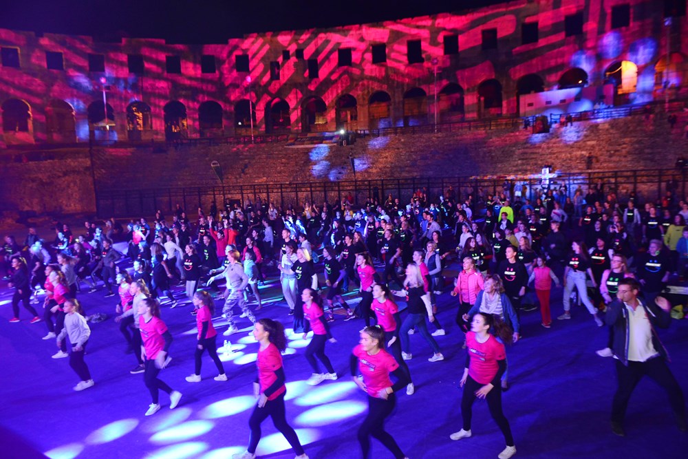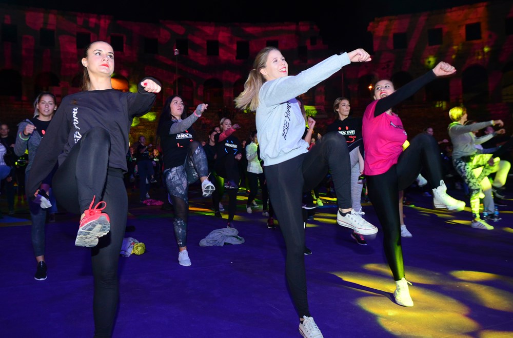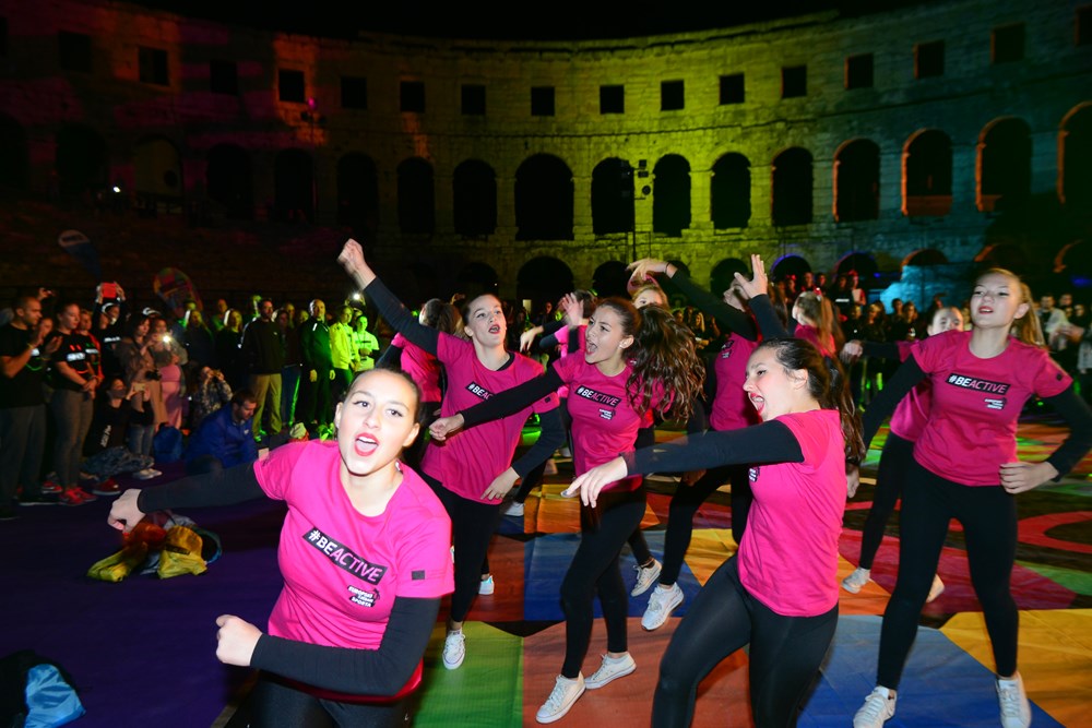 Nakon što su odgledali videoporuku koju im je poslala državna tajnica za sport, ujedno i jedna od najboljih hrvatskih sportašica, Janica Kostelić, Puljani su prionuli vježbanju. U ponudi su imali pet različitih fitness aktivnosti od po 15 minuta. Između su bile pauze koje su svojim nastupima popunjavali razni sportski klubovi od zagrebačkih cheerleadersica, porečkog USB-a i pulskog AB originala, plesača salse iz Plesnog centra Studio do 'vatrenih' plesača iz udruge Traumatic Arts.