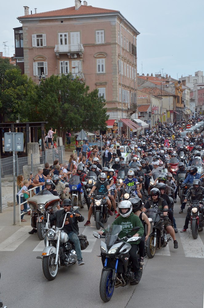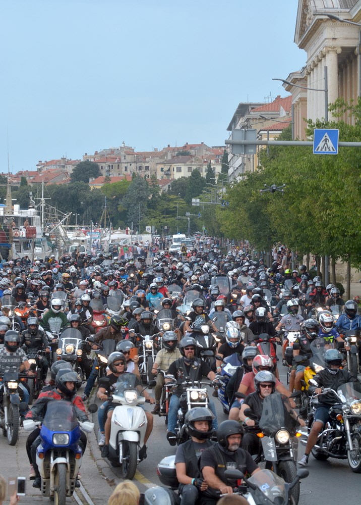 Nakon tjedan dana, 24. Croatia Bike Week došao je skoro do kraja, ali ne prije nego što je Pulom danas protutnjalo nešto više od tisuću motocikala, od Valelunge do Verude i natrag, u koloni dugoj tri kilometara. Loše vrijeme koje je prijetilo malo je smanjilo broj vozača, no kiša je ovaj put poštedjela povorku. Dobro raspoložene motocikliste pratila je znatiželjna publika koja se okupila da bi promotrila ovu veselu povorku ljubitelja oktana na dva kotača