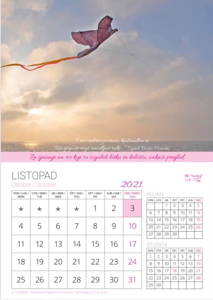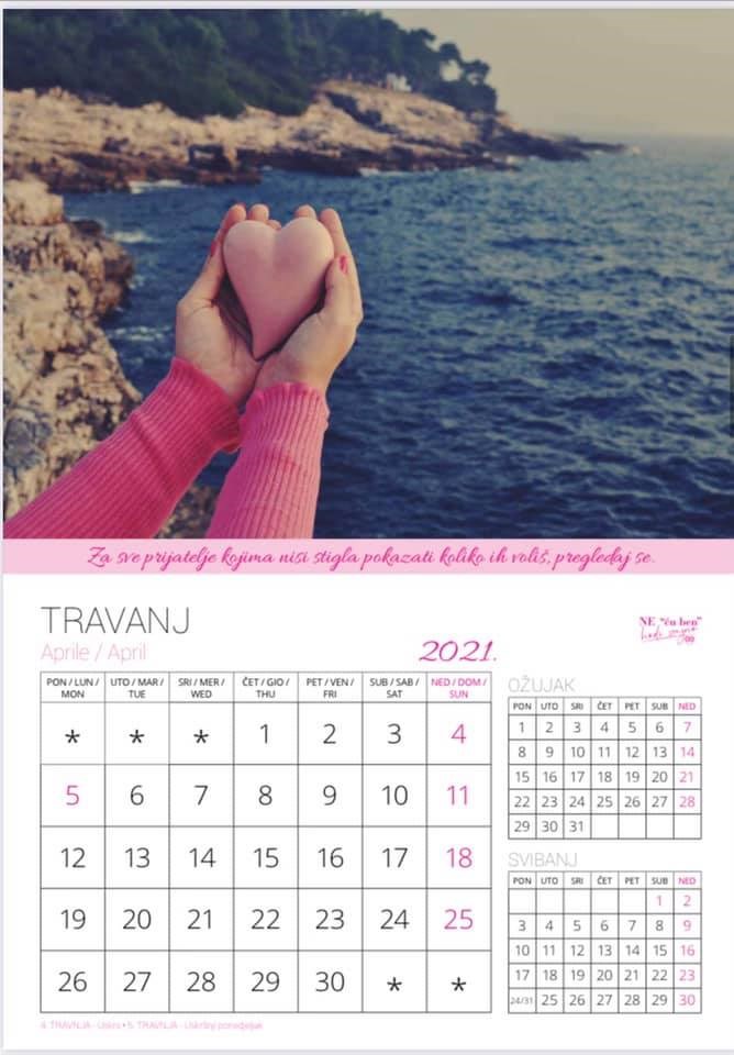- Nadam se da će sve žene koje budu dobile ovaj kalendar slijediti poruku o važnosti samopregleda i redovitih liječničkih pregleda, jer jedan od 365 dana u godinu koji ćemo za to odvojiti može nam spasiti život, a život nema cijenu. U ova tmurna i teška vremena ne smijemo zaboraviti uživati u malim stvarima, poručila je Adrijana Radolović Rajko.