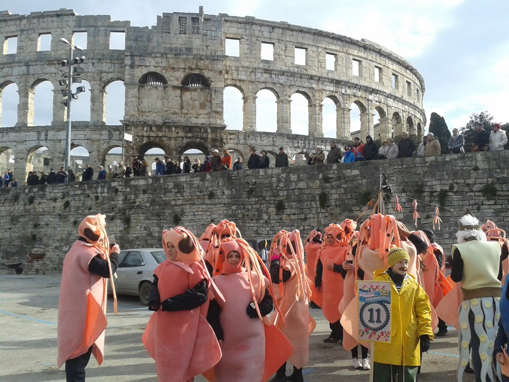 Dobro zabavljen zamjenik pulskog gradonačelnika Robert Cvek uručio im je simbolični ključ grada i tako prepustio upravljanje gradom pulskim maškarama. Prije nego su otišle na poznato mjesto na Velom Vrhu postaviti ovogodišnjeg krivca za sve ljudske patnje i nedaće, uvijek vesele maškare kratko su se zadržale u obližnjoj Turističkoj zajednici gdje je postavljena izložba njima u čast. Veliki, rasplesani maskenbal na Karolini kojem će prethoditi uvijek atraktivna karnevalska povorka očekuje nas 8. veljače, a maškare ostaju na vlasti do 25. veljače, kada će uslijediti spaljivanje pusta.
