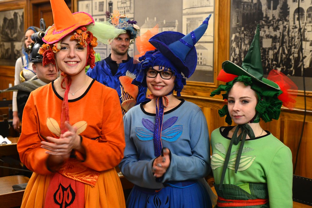 U pulskoj vijećnici malo kad se tako iskreno govorilo kao danas. Pulske su maškare uz bukalete s vinom i glasnu glazbu stigle u gradsku palaču da ponovo preuzmu vlast u gradu, pa makar i na mjesec dana. Na svečanoj primopredaji ključeva pridružili su im se i ove godine članovi Teatra Naranča, točnije Reciklomen i vile Zemlja, Bilje i More, te Krničani koji su očito pobjegli iz zatvora.