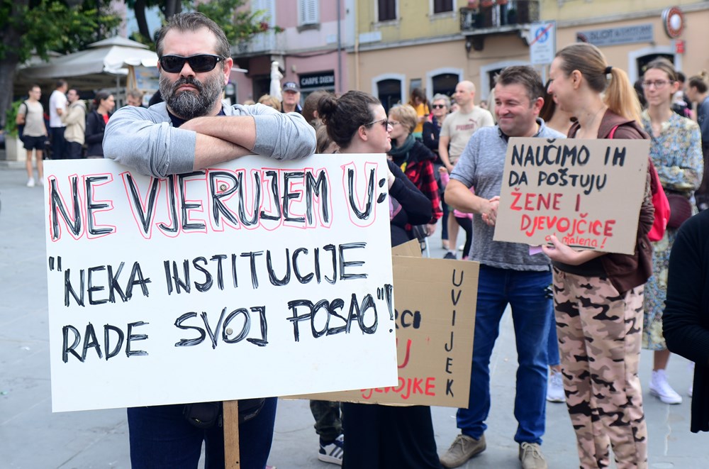 - I zato danas zahtijevamo hitno premještanje sudskog procesa iz Zadra da bi se osigurali uvjeti za pravično suđenje. Zahtijevamo sustav koji podržava i poštuje žrtve nasilja, a sankcionira nasilnike. Zahtijevamo sveobuhvatan i na znanstvenim činjenicama utemeljen odgoj za ravnopravnost spolova. Zahtijevamo javno financiranu podršku za žrtve nasilja, da u državnom proračunu za sljedeću godinu bude dovoljno novca za svakodnevna savjetovališta, sve mjere zaštite žrtava seksualnog nasilja, i zahtijevamo hitno upućivanje kaznenog zakona u saborsku proceduru te njegovo usvajanje da bi se postrožile kazne i konačno ukinula kategorija spolnog odnošaja bez pristanka. Silovanje je silovanje, a silovanje je zloćin, poručila je Brajković.