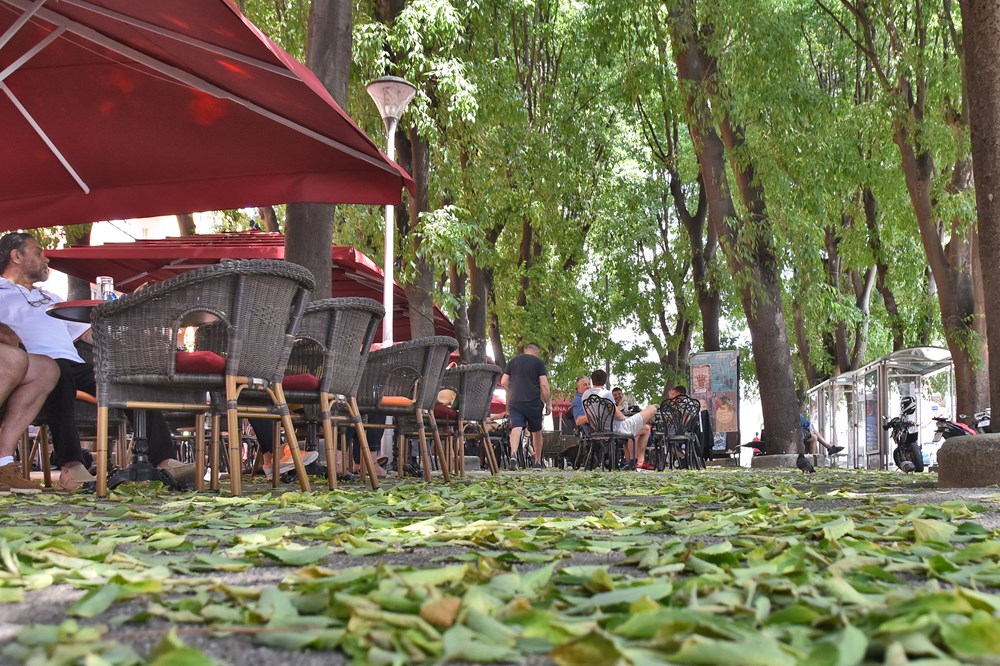 Kasno je proljeće, a u Puli jesen. Čitavi Giardini, i korzo i cesta, zasuti su opalim lišćem već danima, k tome zelenim lišćem, što je još neobičnije. Konobari svako-toliko puhalicama počiste "svoj" dio platoa - Giardini su pretvoreni u jednu veliku ugostiteljsku terasu - pa sve lišće natjeraju na preostali uski prolaz za pješake i taj zeleni tepih onda čeka Herculaneine čistače.