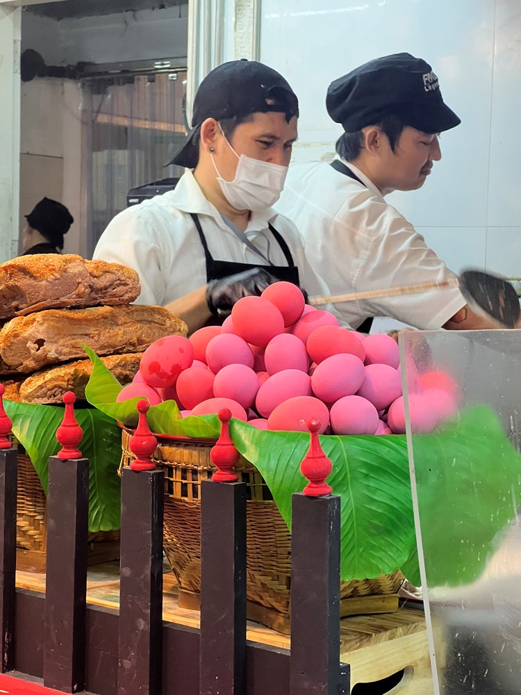 Hrana koja se nudi na ulicama Tajlanda je raznolika, a ono što možda i najviše šokira Europljane jesu uvjeti u kojima se ona priprema i skladišti. Pa tako nije neuobičajeno vidjeti jaja koja stoje na štandovima na 37 stupnjeva Celzijevih, kao i meso i riba, pa i meso krokodila.