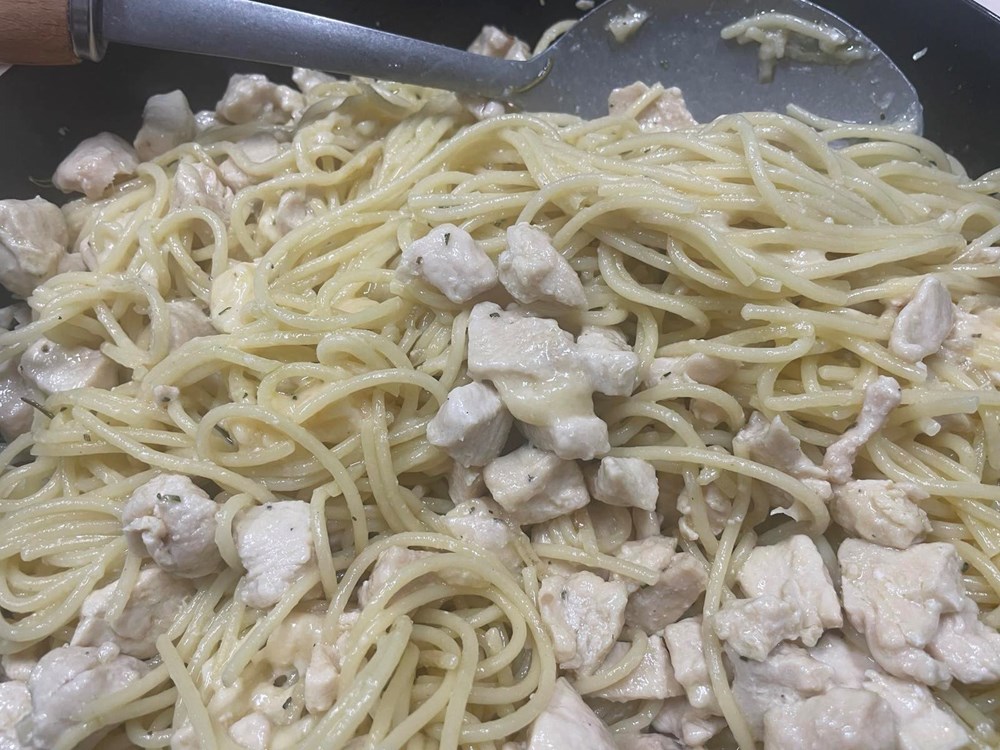 4. Spaghetti s piletinom i sirom Grana padano: Narežite pileća prsa na kockice nešto veće od zrna graha pa ih 10 minuta pržite na maslinovom ulju, dodajte prstohvat cvijeta morske soli i pola prstohvata crnog friško samljevenog papra. Zatim maknite s izvora topline. Sir Grana padano izrežite na kockice veličine graška, stavite ga u staklenu čašu pa pospite s čajnom žlicom iglica ružmarina kojeg ste oštrim nožem usitnili u prah, čašu napunite maslinovim uljem ostavite po strani. Zatim u kipućoj slanoj vodi iskuhajte špagete No5 cca 10 do 12 minuta, da budu "al dente" i procijedite ih. U skuhane špagete umiješajte prženu piletinu i kockice sira Grana padano s maslinovim uljem i usitnjenim ružmarinom.