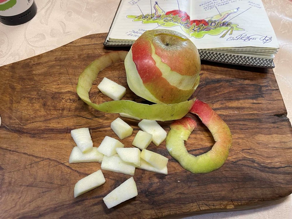 Rano jutro, a ja već imam razrađen plan… sjedim za kućnim šankom i dok ispijam svoj rano jutarnji espresso uz "bitter rosso" aperitiv kontroliram svoju "to do list". U kojoj piše sljedeće: sa sobom ponijeti: batat, jabuku, krušku, špagete No5, sir Grana padano… pernicu s noževima…