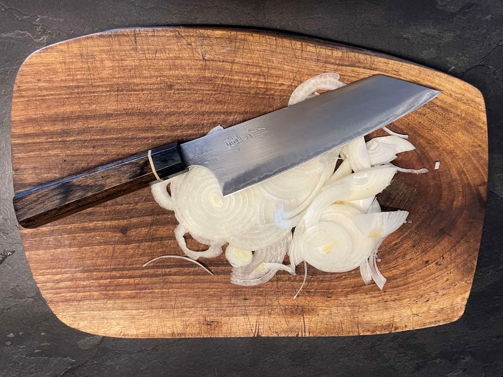 Oštrim kuhinjskim nožem narežite glavicu luka na tanke kolutiće, a sušenu rajčicu narežite na trakice. Šparuge iskidajte prstima sve dok osjetite mekani dio dok lomite šparugu.