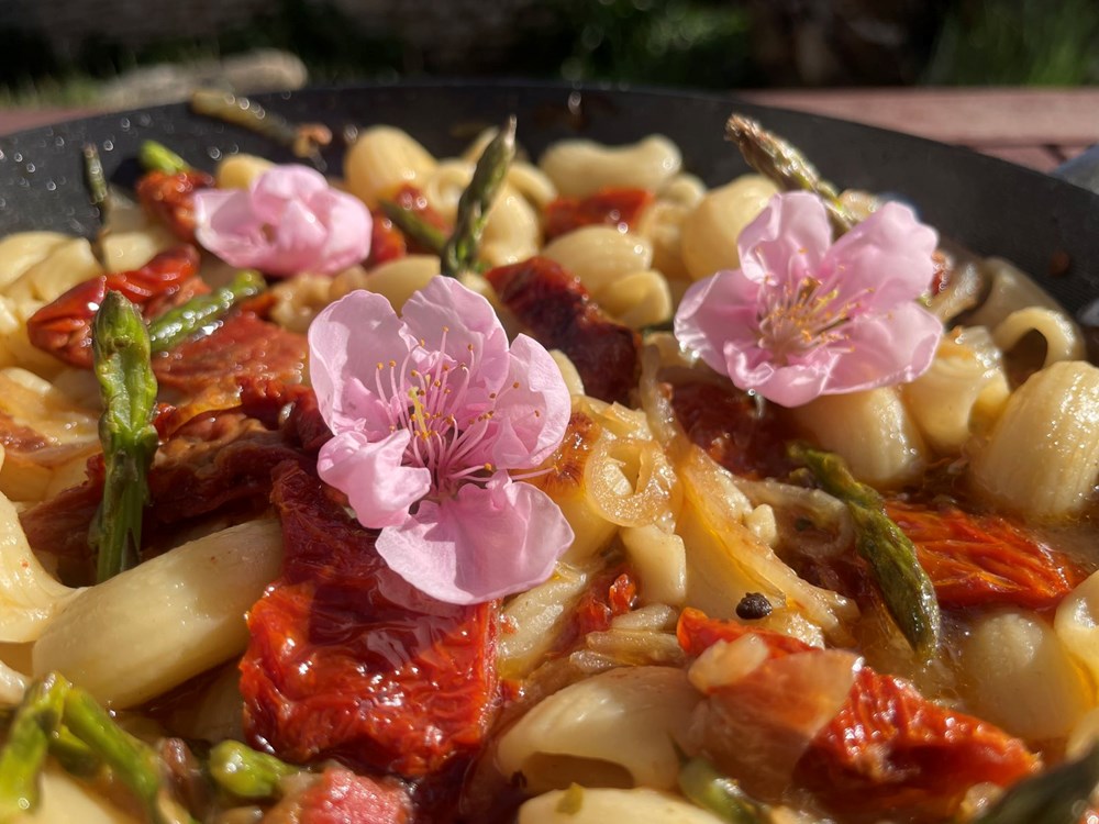 Nakon 5 do 6 minuta servirajte tjesteninu sa šparogama u poludubokom tanjuru… Ovo jelo možete ukrasiti cvjetovima šljive, trešnje, breskve ili bilo kojim drugim vama oku prihvatljivim i ruci podatnim cvijetovima… uživajte u aromi ovog jela, to je aroma proljeća… dobar vam tek dragi moji ljudi… Vaš Outlaw…
