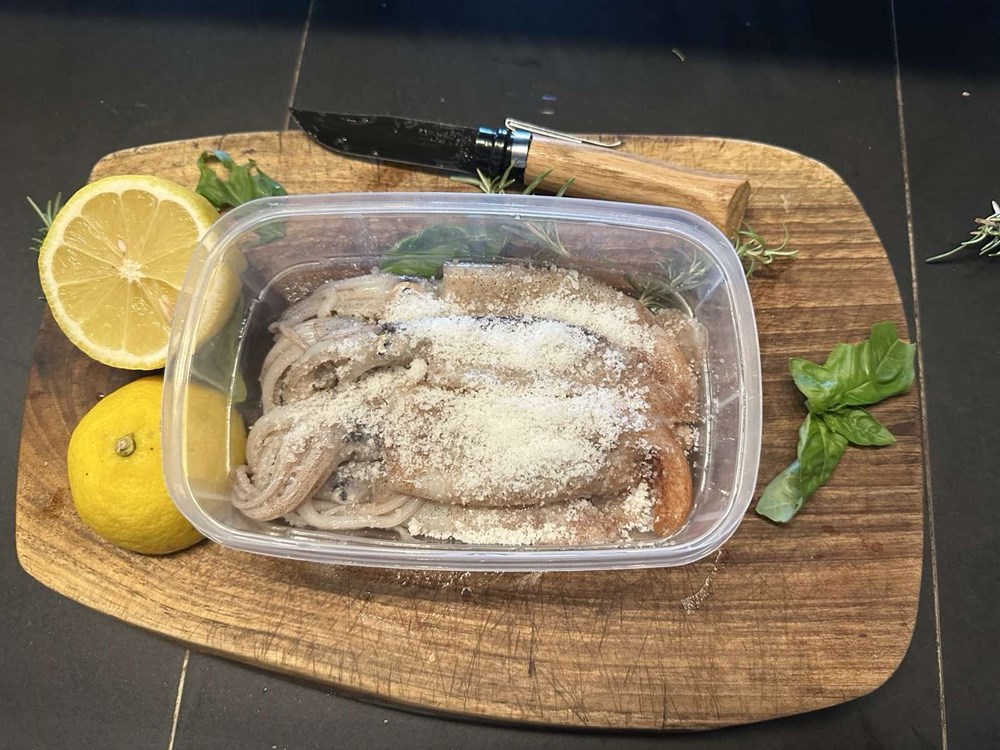 Drugoga dana izvadite zdjelu iz škrinje na sobnu temperaturu na sat-dva da se sadržaj otopi. Sad se sigurno u vašem umu postavljaju pitanja od strane vaših malih sivih mentalnih birokrata koji tamo žive, u stilu… "Zašto smo ovo napravili sa svježom lignjom? … a mali šareni klaunovi koji pak žive u zoni vaše podsvijesti daju im odgovor.. "Pa valjda zato što pomičemo granice okusa i boljeg uživanja u svemu pa tako i u namirnicama koje konzumiramo…