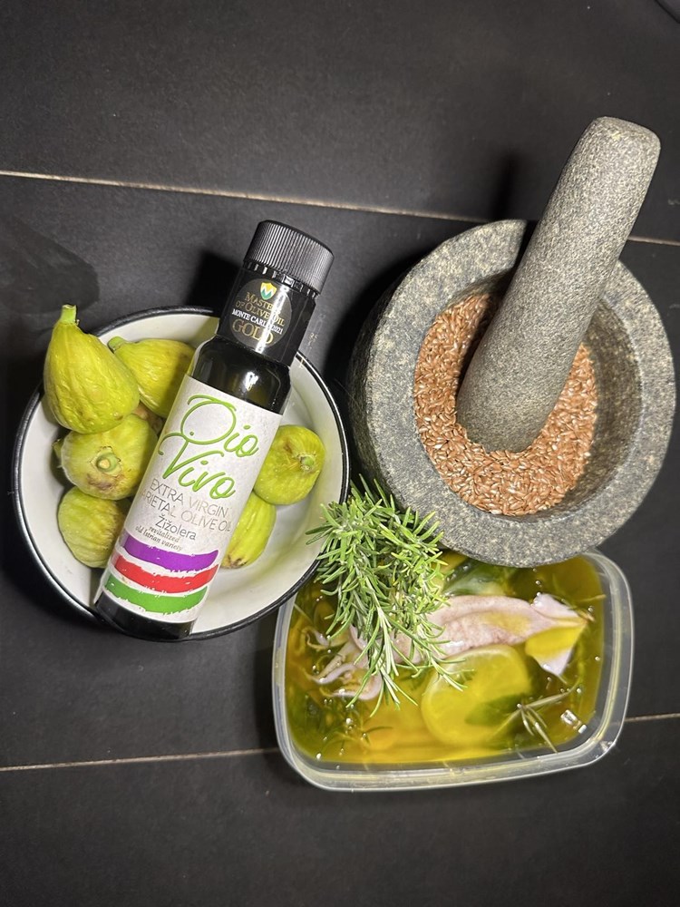 Eh da i još nešto bitno…. u mužaru pored vašeg tanjura je ostalo dosta zdrobljenih sjemenki lana. To nije slučajno, kada nabodete lignju na vilicu, umočite ju skroz u te sjemenke pa ju tek onda stavite u usta, uključite vaše cijenjene nepce i uživajte uz dodatni zalogaj sočne smokve koju ste pržili na maslinovom ulju, ružmarinu, cvijetu morske soli i papru… Živjeli, dragi moji ljudi! Vaš Outlaw