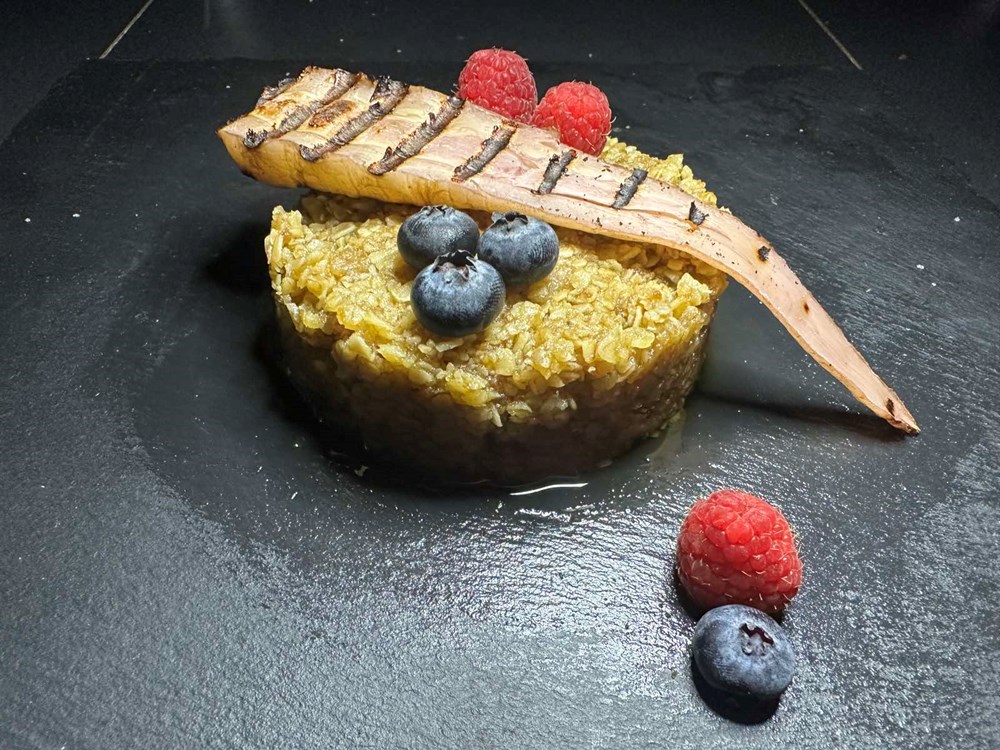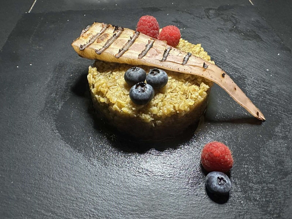 Na plitkom ravnom tanjuru postavite okrugli kalup za manji kolač ili rižoto (ako ga nemate razrežite plastičnu bocu od vašeg omiljenog napitka da ima oblik kraće cijevi recimo da bridovi budu cca jedan pedalj dugački) stavite zatim velikom žlicom zobenu kašicu koja je upila dušu od pečene koljenice unutra. Nakon jedne minute maknite kalup i na vrh zobene kašice stavite pola korijena celera kojeg ste kuhali u manjem lončiću pa zatim par minuta istostirali u tosteru. Pored korijena celera na zobenim pahuljicama stavite dekoracije radi nekoliko svježih malina i nekoliko svježih borovnica. To jelo je spremno za vaš užitak… Sigurno se pitate: pa što smo mi tu napravili?!