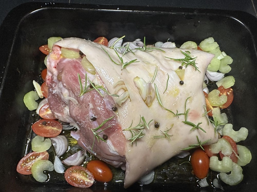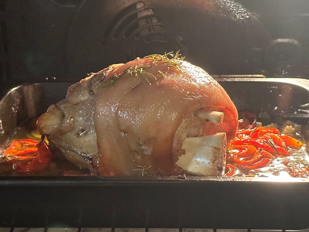 Zatim stavite koljenicu u pećnicu na 180 stupnjeva Celzija da se peče cca sat i pedeset minuta.