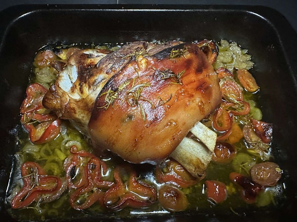 Jednog je dana jedan kolega za jednu grupu gostiju u kuhinji ispekao svinjski but in forno. Izvadio ga je iz pećnice, te izvadio iz posude za pečenje i predao drugom kolegi na rezanje i slaganje jela s prilogom na tanjur.