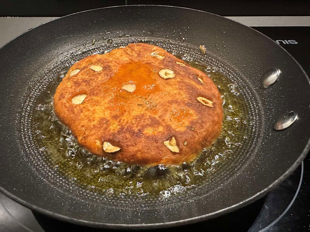 Dobivenu polpetu zatim obostrano ispržite na maslinovom ulju na srednje jakoj vatri tri do četiri minute sa svake strane, pa maknite s izvora topline na kuhinjski ubrus da se upije višak ulja.