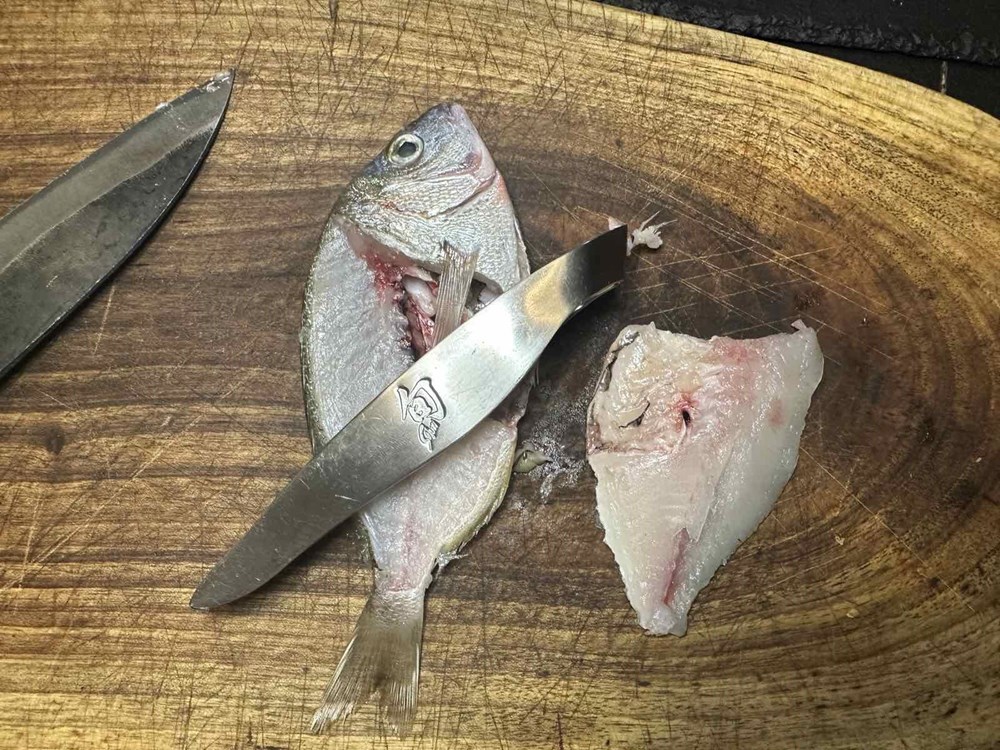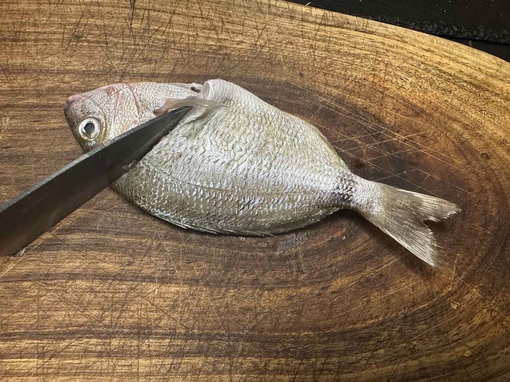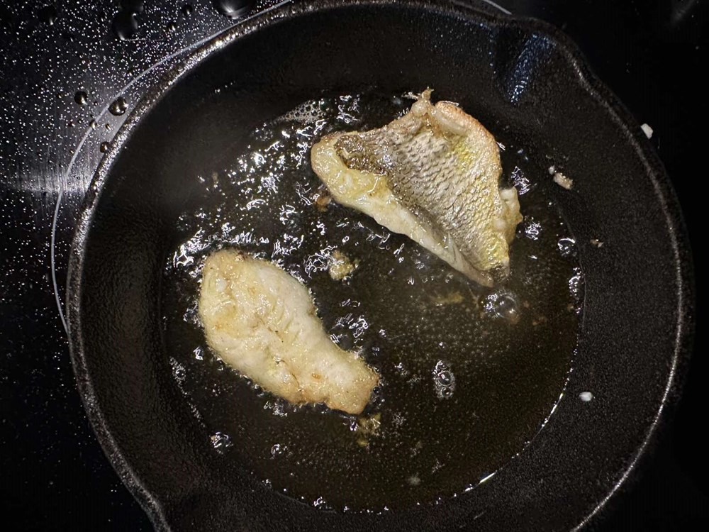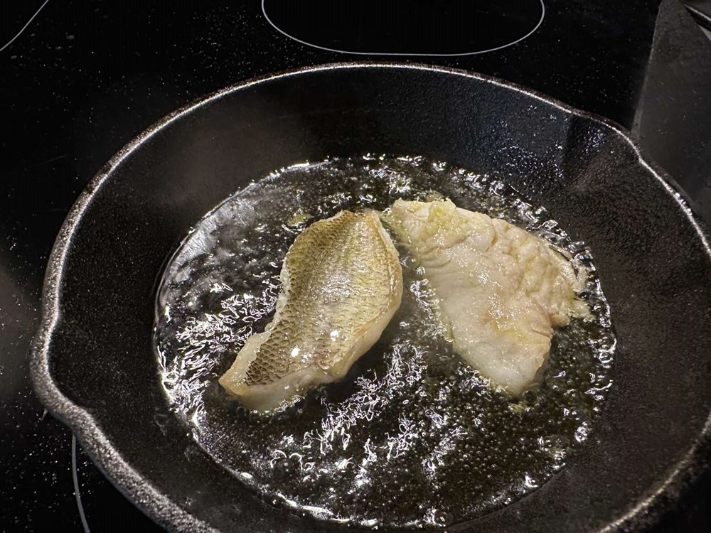 Izfiletirajte ribu. Ako ne znate kako se riba filetira pogledajte na YouTube-u (ima na tisuće videa), skontat ćete u roku od 5 minuta ili pogledajte moje fotke od recepta. Filet ribe obostrano pržite u plitkoj tavi na maslinovom ulju cca 1.5 do 2 min sa svake strane. Zatim maknite ribu sa izvora topline.