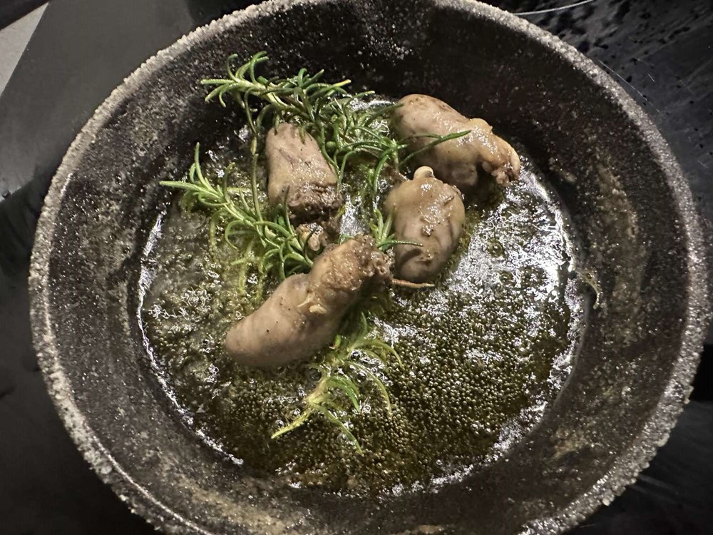Izvadite zatim srce iz tave, tavu isperite i osušite, stavite u nju maslinovo ulje pa pržite cca 3 do 5 minuta uz lagano i konstantno okretanje srce pilića . Dok ga pržite, dodajte po njemu pola prstohvata crnog friško mljevenog papra. Po isteku vremena maknite srce s izvora topline.