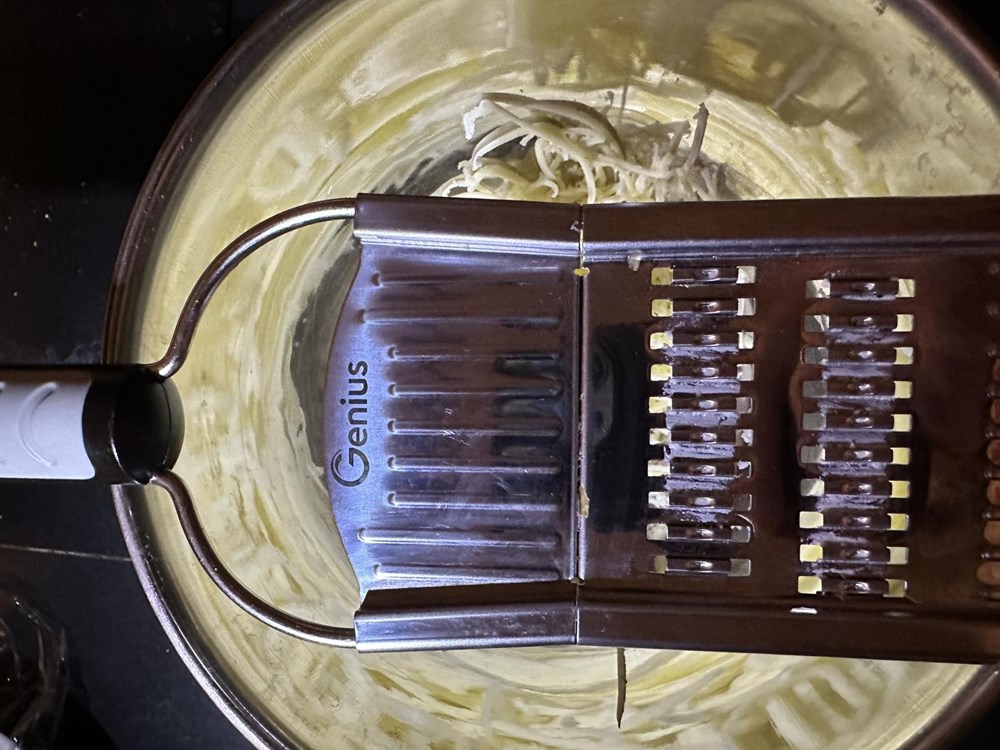 Pecite na srednje jakoj vatri sve dok smjesa ne postane gotovo kompaktna - neka bude još lagano mekana, pa dodajte 10-ak deka naribane gaude (ostatak čuvajte za kraj).