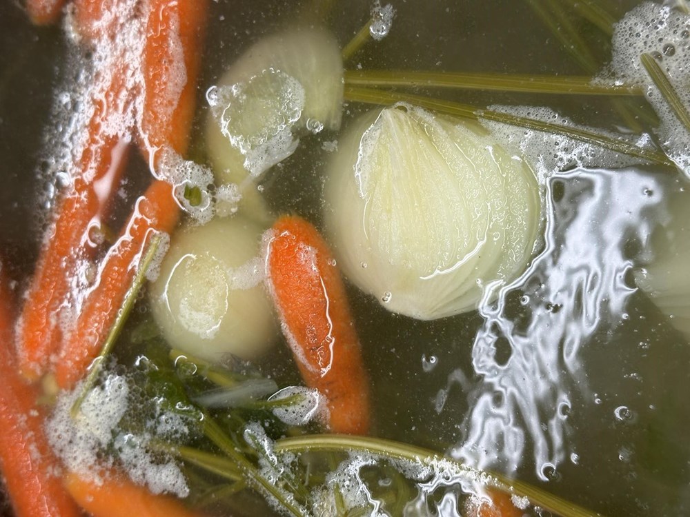 Dodajte zatim pola manje kaciole povrtnog temeljca od luka, peršina i mrkve koji ste stavili kuhati pola sata prije izrade rižota.
