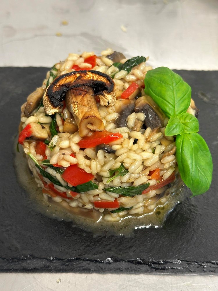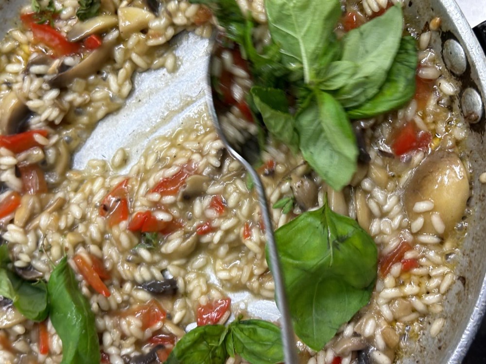 Maknite rižoto s izvora topline i ostavite ga u tavi da odstoji još 5 minuta.
