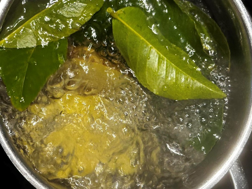 Operite dobro krumpir, pa ga oštrim nožem razrežite na pola. Koru ostavite na njemu. U kipuću slanu vodu stavite kuhati krumpir deset do maksimalno petnaest minuta (nikako ne duže). Pet minuta prije kraja kuhanja u vodu dodajte trećinu čajne žličice papra i sedam sviježih listova limuna. Po isteku gore navedenog vremena maknite lonac od izvora topline i ostavite krumpir na pet do sedam minuta da odstoji u aromatiziranoj vodi u kojoj se kuhao, da upije još malo citrusnog okusa kojeg je ispustio u vodu list limuna. Zatim izvadite krumpiri iz vode i ocijedite ga.