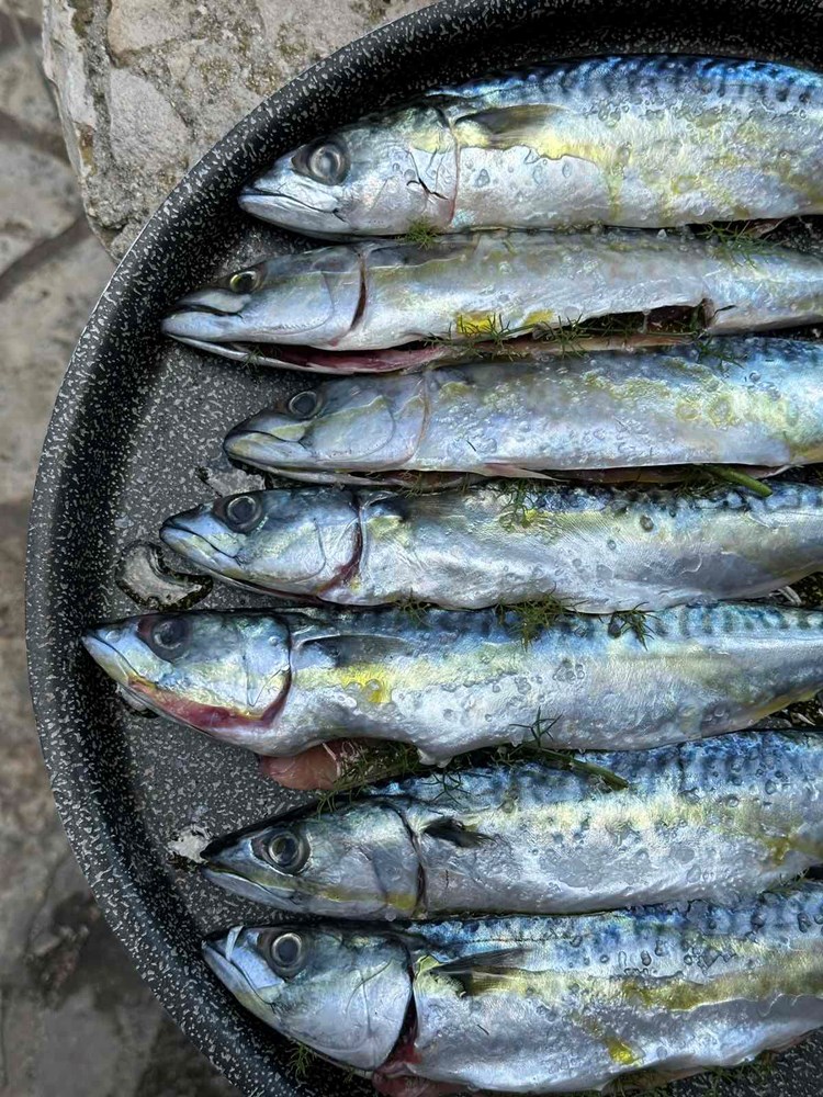 Unutrašnjost trbušne šupljine ribe isperite svježom vodom. Namažite stijenke trbušne šupljine vrlo tankim slojem meda, tek toliko da ga ima u tragovima. Zatim po tim istim stijenkama trbušne šupljine utrljajte po prstohvat cvijeta morske soli krupne. Iako se radi o svježoj ribi na ovaj ćete način umanjiti onu gorčinu koja se osjeća oko unutrašnjih stijenki u ribe. Unutrašnjost ribe poprskajte s par kapi maslinovog ulja pa u svaku ribu stavite po grančicu mladog koromača.