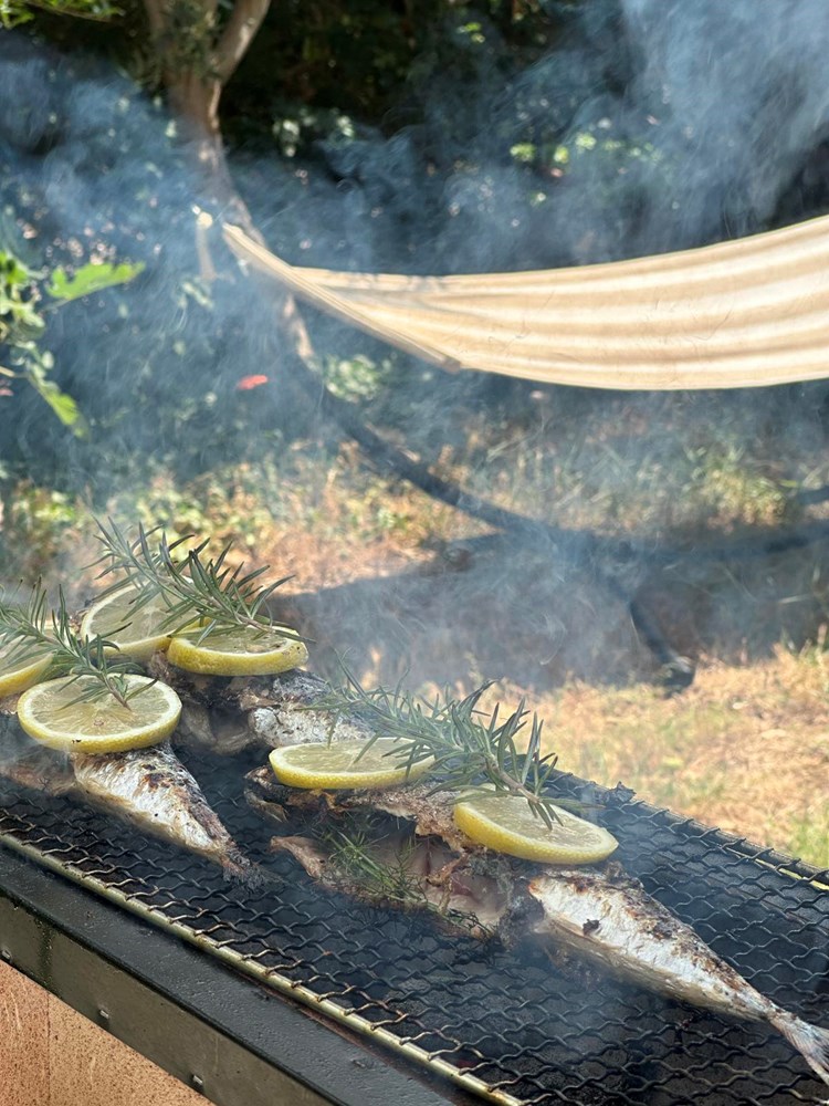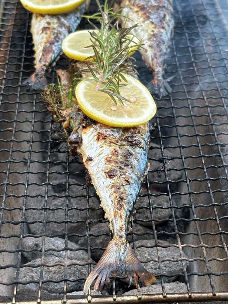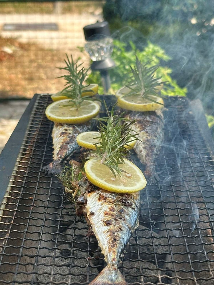 Taman nešto prije nego okrenete ribu na drugu stranu na žar ispod ribe ubacite nekoliko grančica svježeg ružmarina, nek se riba “nadimi” lagano njegovom esencijom. Kada je riba okrenuta na drugoj strani koju ste položili na gradele i kada se velika i najbliža do glave leđna kost može izvući s lakoćom iz ribe, vaša je riba spremna za skidanje sa žara.