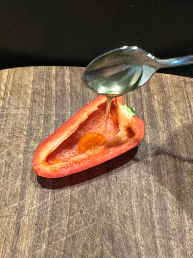 Oštrim kuhinjskim nožem razrežite papriku na pola i izvadite joj sjemenke.
