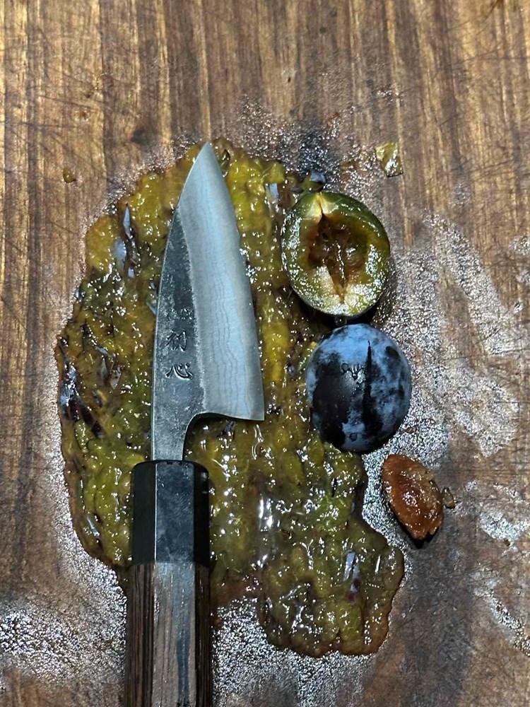 Zatim na isti način usitnite dvije zrelije šljive, trećinu manjeg luka ljutike i jedan svježi lovorov list. Sve navedeno ubacite u zdjelicu s nasjeckanom piletinom pa dodajte još unutra pola jušne žlice maslinovog ulja, trećinu čajne žlice cvijeta morske soli, trećinu čajne žličice papra pa sve dobro rukama izmiješajte minut, dva dok ne dobijete kompaktnu smjesu.