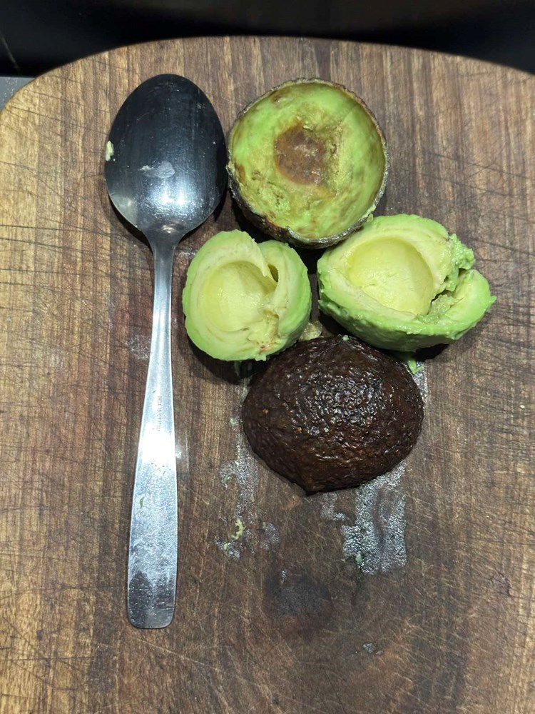 Unutar razrezane polovice, kuhinjskom žlicom izvadite meso od avokada iz kore i ostavite cijelu koru (kora je tvrda i podsjećat će izgledom kao neka manja košarica ili polovica jaja). Ova će vam kora trebati kasnije prilikom serviranja jela.