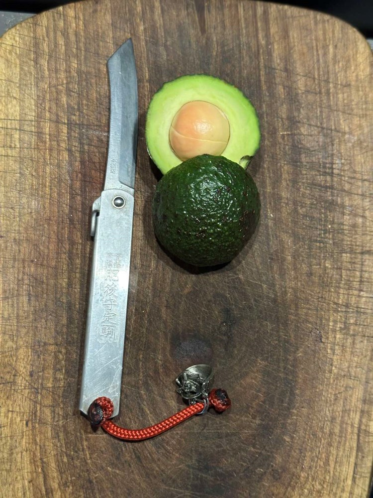 Razrežite avokado na pola pa iz njega izvadite košticu.