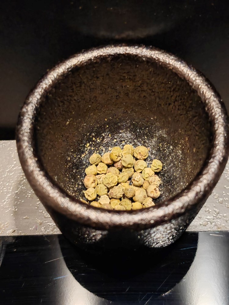 U manjoj tavi na srednje jakoj vatri stavite pržiti borovnice, čajnu žličicu meda i pola čajne žličice zelenog friško samljevenih papra. Nakon 2,5 min do maksimalno 3 minute maknite tavu s izvora topline.