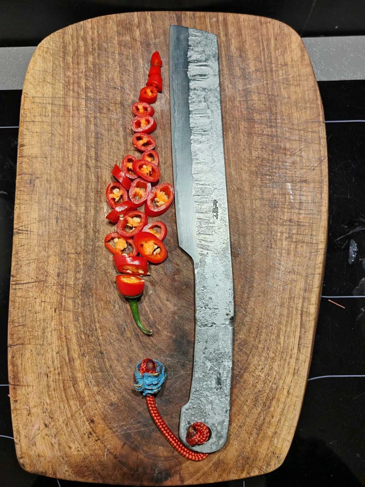 Izrežite crveni ljuti feferon na kolutiće.