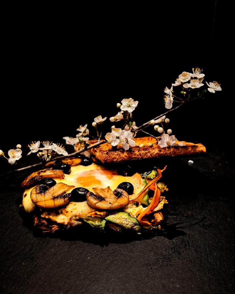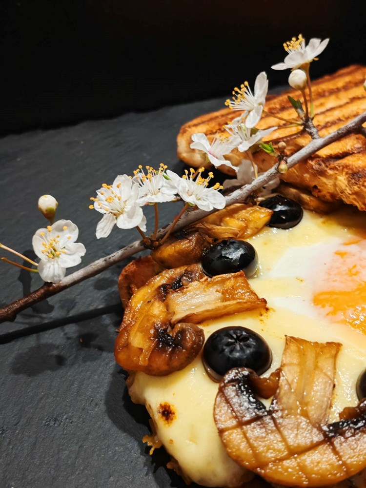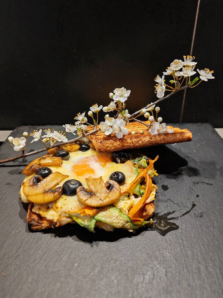 Po rastopljenoj gaudi i prženom bjelanjku posložiti ću nekoliko bobica od svježe borovnice. Ona će zahvaljujući svojoj blagoj kiselosti dati privid petog okusa zvanog "Umami" zahvaljujući miješanju blagih tonova okusa šampinjona, jaja, mrkve, gaude i tikvice. Na kraju krajeva - svojim će izgledom na bjelanjku jajeta asocirati na onaj kraljevski plašt sa crnim točkicama kojeg su nekada kraljevi i kraljice nosili na ramenima oko svojeg vrata. Kasnije kad sve bude gotovo, sve ovo staviti ću između dvije fete hrskavog i tostiranog kruha, zagristi i uživati u sočnosti sadržaja i okusa koji se međusobno savršeno sljubljuju. Dakle, približavam se svojem oldschool japanskom gramofonu, pomičem gramofonsku iglu na početak pjesme na ploči, stavljam zvuk na maksimum i uz zvukove punka, palim svoju indukcijsku ploču i toster. Sretan sam jer znam da danas pravim tost, zapravo PUNK TOST.... Živili! Yhaaaaaaa!