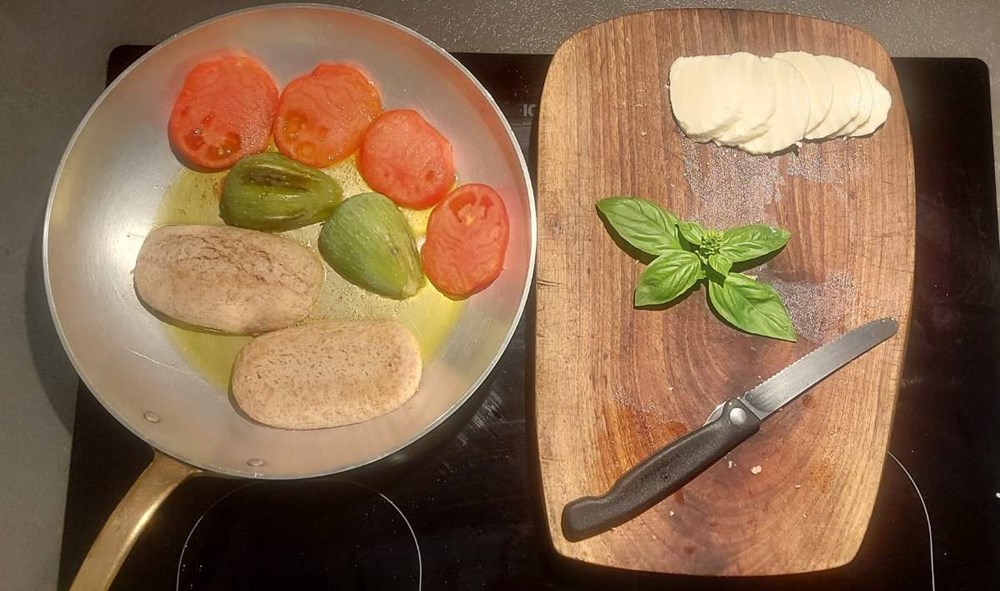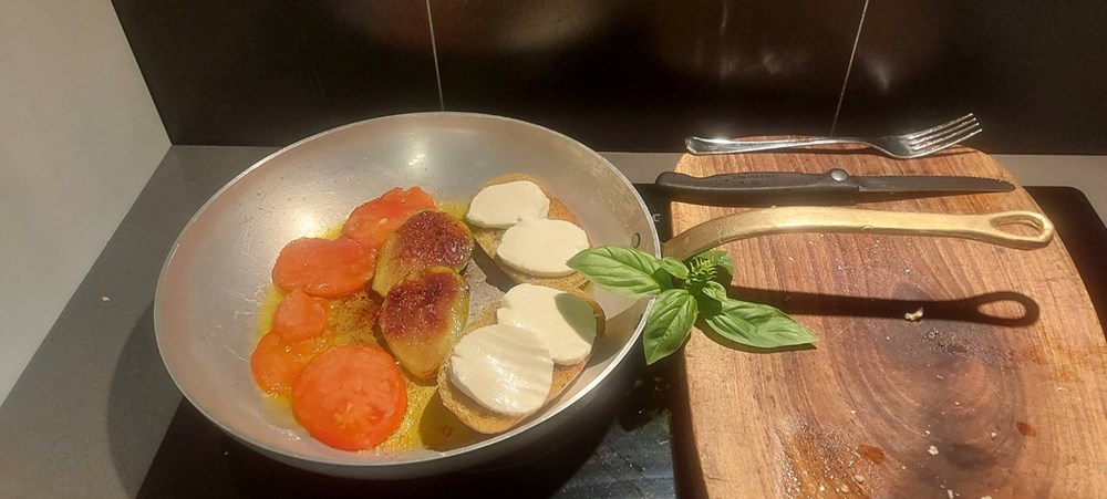 Iznenadit ćete se kako se smokva sljubljuje s pomidorom i mozzarelom iako je u početku dok je bila sirova imala slatkasti okus... dobar vam tek i uživajte u trenutku...