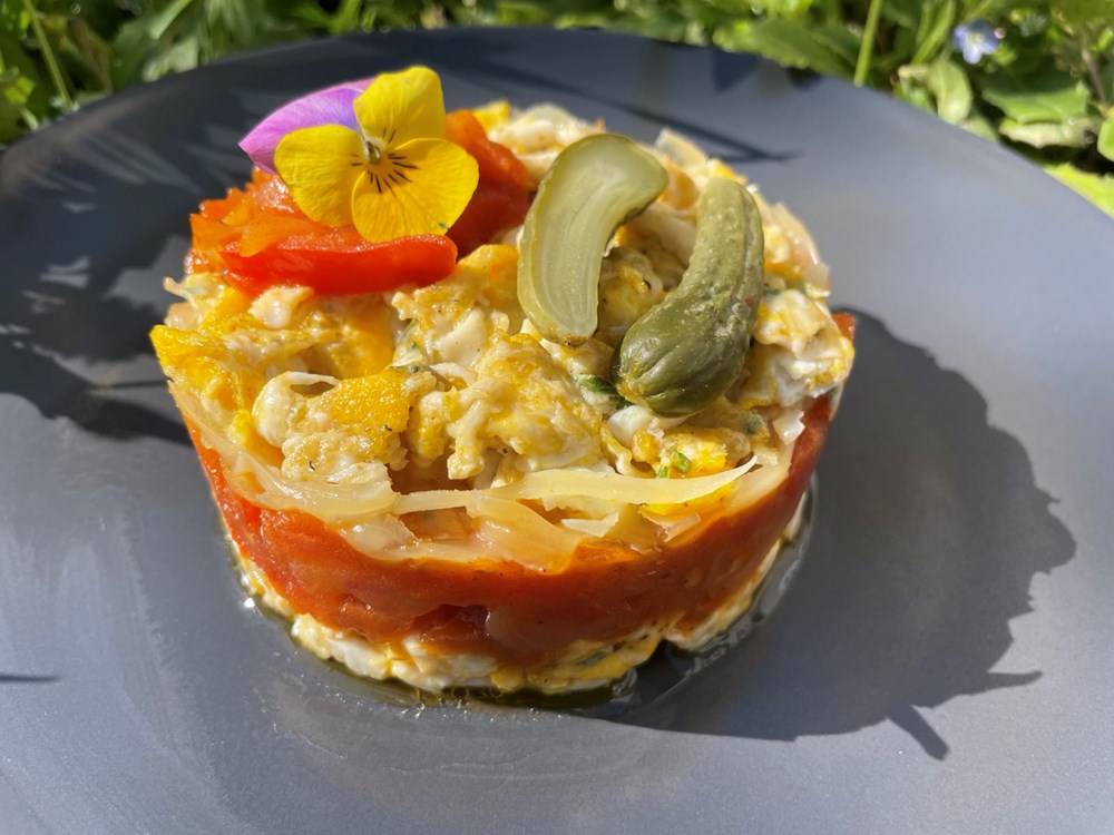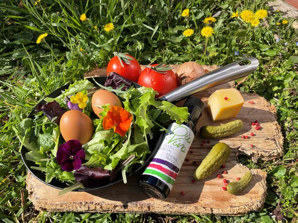 Ali nema više vrtova, nema više kokoši i nema više jaja… Pa odakle dolaze danas jaja? Valjda iz dućana, zaista se ponekad zapitam jesam li normalan… jaja dolaze iz dućana kao i meso, mlijeko i gumeni bomboni… Hm… sjećam se tih vrtova, u njima je uz jaja još rastao pomidor, luk, kadulja a od cvijeća uglavnom maćuhice i dragoljub… i onda najednom otvara se moje "gastronomsko treće oko" i osjećam da sve te stvari želim danas objedinjene u jednome jelu na tanjuru za marendu… dakle, danas kuham!
