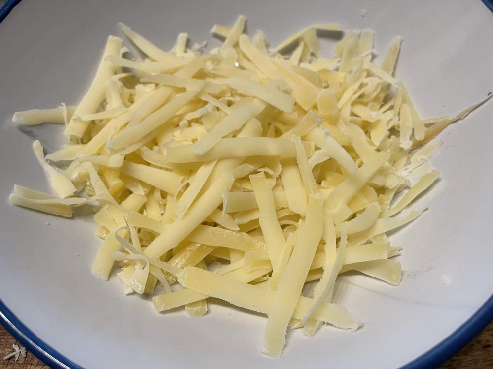 Ako nemate okrugli kalup od inoksa, izrežite dio plastične boce u kojoj ste kupili sok ili vodu na način da dobijete cijev cca 7 do 10 cm visoku, pa nju položite na ravan tanjur. U tu cijev na dno prvo položite jedan sloj fritaje, pa u kalup na fritaju stavite žlicom šalšu koju ste spržili a na šalšu stavite desetak deka naribane gaude, a na gaudu opet stavite sloj fritaje tako da potpuno pokrijete gaudu.