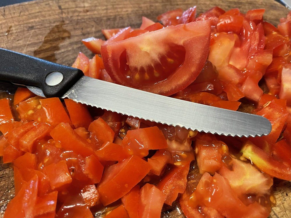 Naribajte gaudu ribežom na krupno pa ju stavite u zdjelicu, pomidor narežite na kockice veličine graška, luk narežite na tanke rezance, kadulju nasjeckajte nožem na sitno…