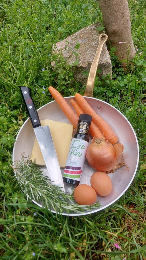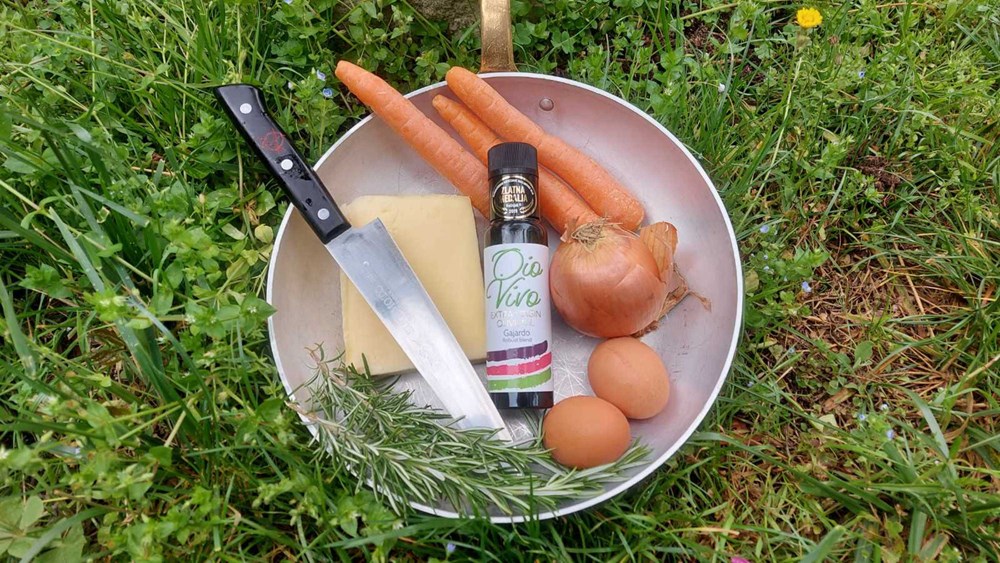 Da okolina bude sasvim drugačija, umjesto dobro poznatog krajolika od krumpira, pomidora ili graška, odlučujem se za pejzaž od mrkve i kolutova luka, prženih u maslinovom ulju.