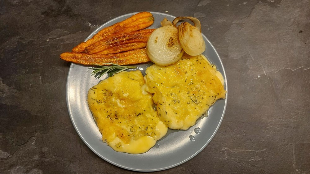 Tim jednim korakom u nepoznato, razbijamo vlastite tabue i razvijamo se kao slobodno misaono biće.... Gledam ja tako u komad gaude i odlučim ga ispržiti, uvaljanog u jaja i brašno, pa učiniti i korak dalje u nepoznato te ubaciti u brašno jušnu žlicu sitno nasjeckanih svježih listova ružmarina.