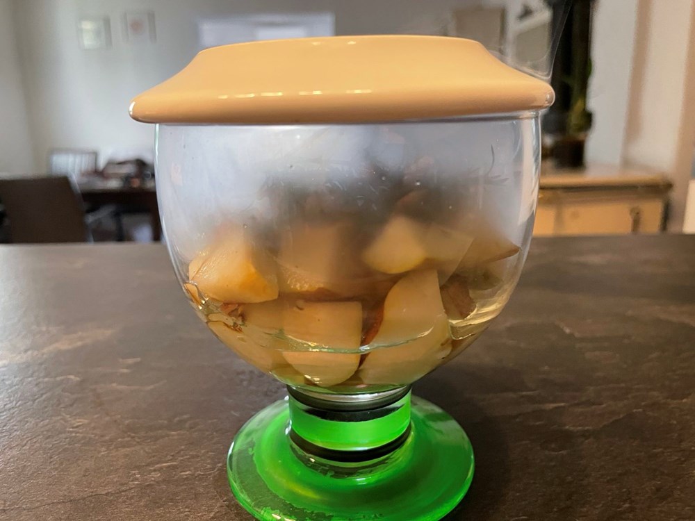 Tako poklopljenu čašu stavimo na desetak minuta u frižider da se kruška rashladi i da upije eteriku dima ružmarina. Nakon toga izvadimo ovu hladnu voćnu salatu iz frižidera i uživamo u aromi kruške s blagim okusom dimljenog ružmarina… dobar tek i uživajte u eteričnosti života dragi ljudi… vaš Outlaw