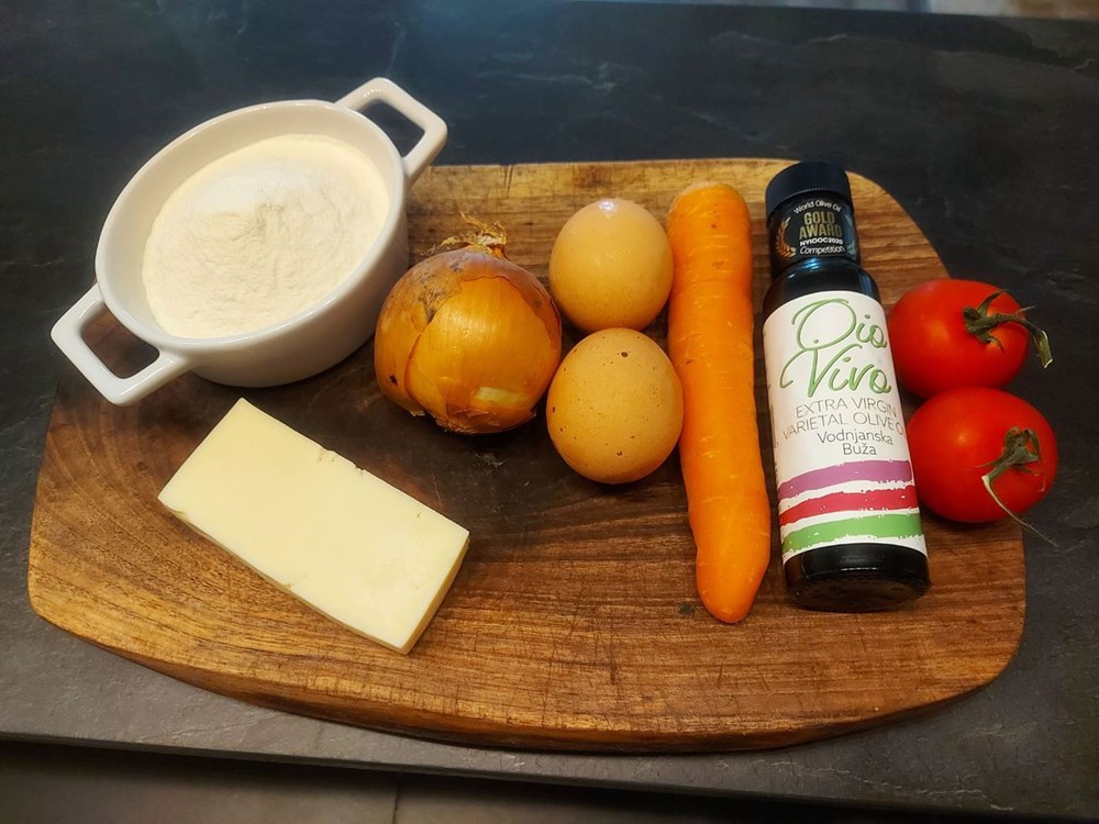 Najprije u zdjelici izmutimo jedno jaje s oštrim brašnom (1 mala šalica od kave puna brašna), par kapi maslinovog ulja, prstohvatom soli i prstohvatom papra.