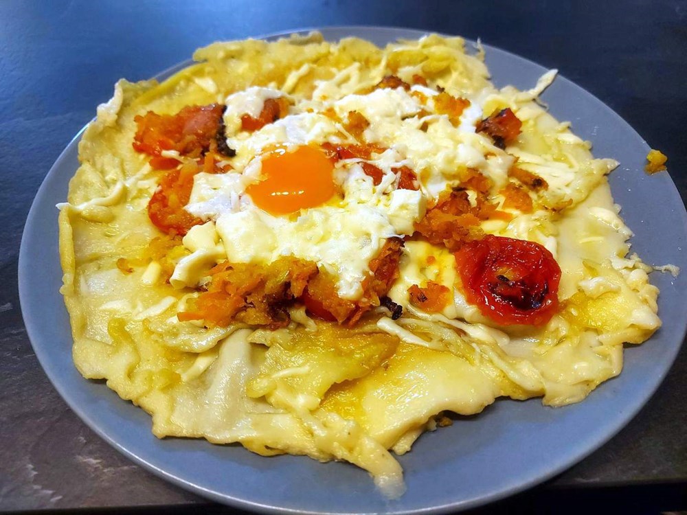 Takvo jaje na oko s povrćem i rastopljenom gaudom položimo na palačinku po kojoj je rastopljena gauda... dobar tek i ugodan dan Vam želim...