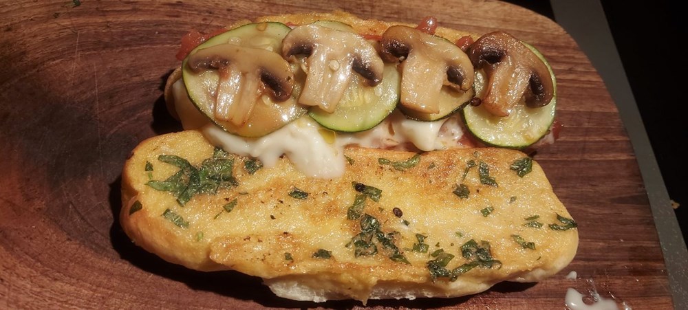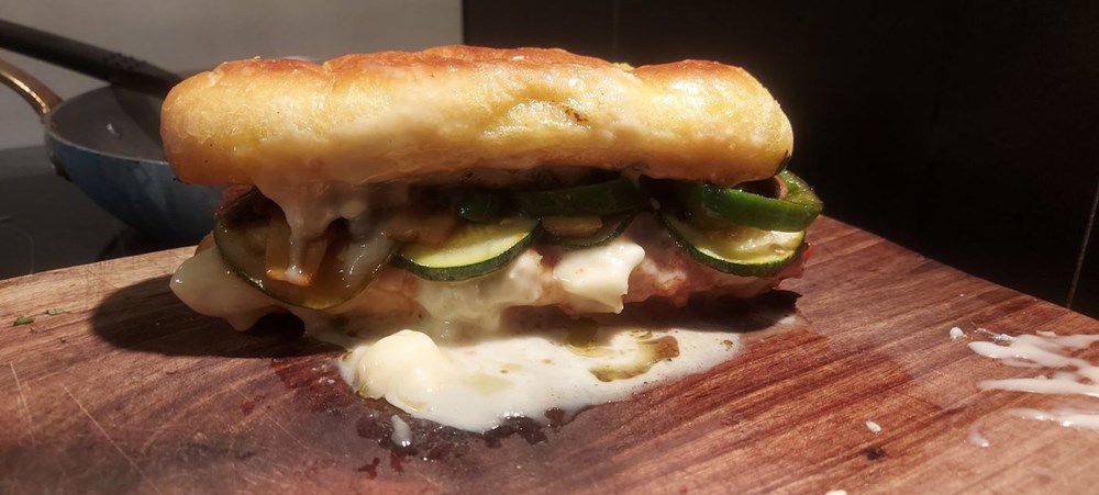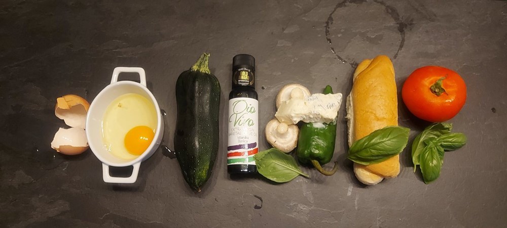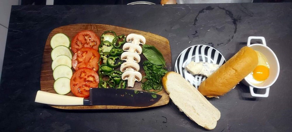 Moj se psihodelični gastronomski "Outlaw" um odlučuje za 100 %-tni "pornfood sandwich"... odabirem pecivo, odabirem tikvicu, pomidor, gorgonzolu, svježi bosiljak, jaje i papriku... dakle danas kuham... yhaaaaa!