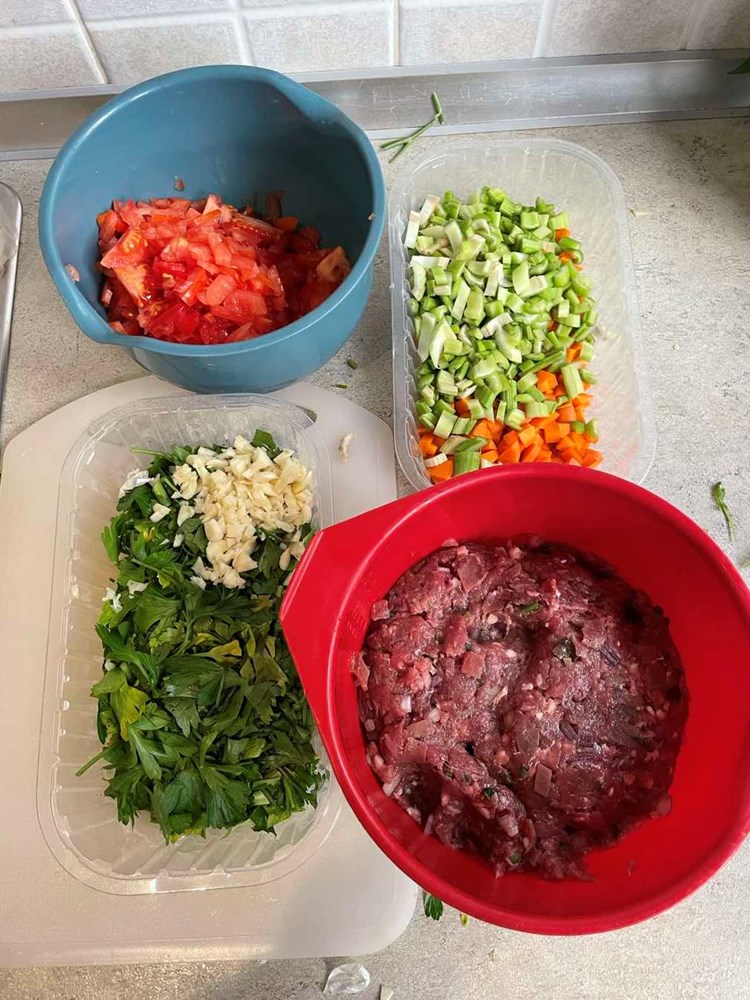 Odmah zatim ubacimo mljevenu junetinu i na trakice narezanu sušenu govedinu. Sve ovo kuhamo nekih 30-ak minuta na srednje jakoj vatri uz konstantno miješanje.