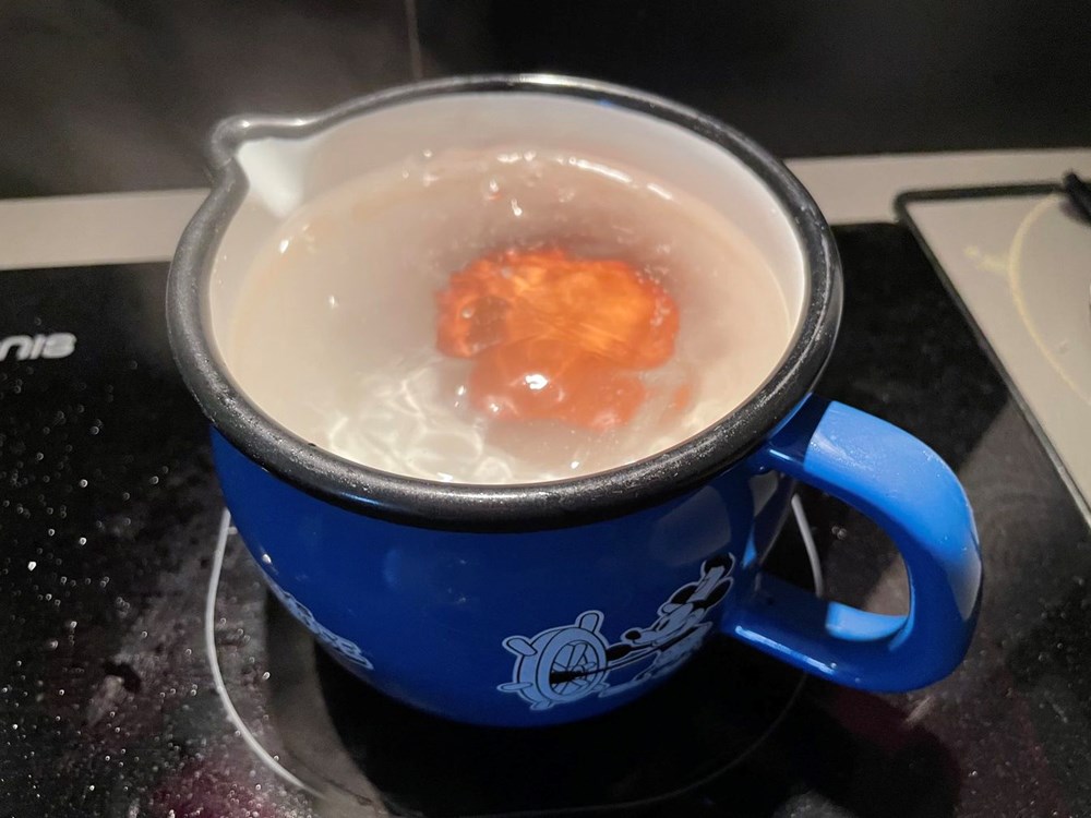 U mali lončić s kipućom vodom ubacite 2 jaja pa ih kuhajte 3 do 5 minuta. Nakon toga jaja izvadite iz lončića ohladite ih pod špinom hladnom vodom. Ogulite jaja od kore pa ih narežite na fete.